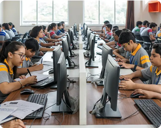 At the secondary school level, eTechno promotes cohesive learning through the innovative 4Cs Approach—Critical Thinking, Creativity, Collaboration, and Communication. With dedicated mentors and regular PTMs, eTechno keeps parents engaged in their child’s journey. Error Analysis boosts academic improvement, while the Olympiad Programme prepares students for national and global competitions.